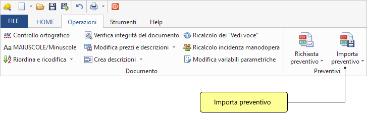La funzionalità Importa preventivo permette di importare i prezzi che sono stati offerti e quindi memorizzati su un determinato preventivo.