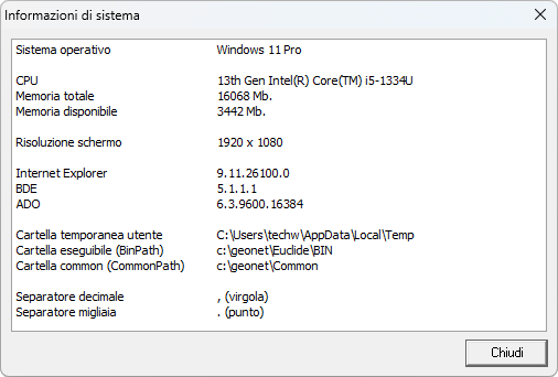 Tramite la funzione Informazioni di sistema, accessibile da Strumenti | Informazioni di sistema, è possibile visualizzare alcune informazione sul computer in cui è installato il programma.