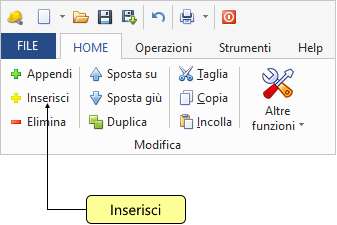 A differenza del comando Appendi (che inserisce il nuovo dato in fondo all'elenco), il nuovo dato viene inserito nel punto selezionato.
