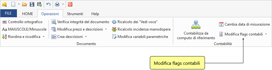 La funzionalità Modifica flags contabili comprende le seguenti due opzioni: