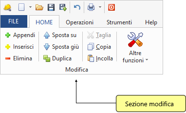 La sezione Modifica ha al suo interno le funzionalità riguardanti la gestione delle voci: