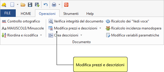 Le funzionalità presenti nel menu Modifica prezzi e descrizioni consentono di aumentare/diminuire i prezzi in percentuale (anche con formule di calcolo), di variare i prezzi in base ad un rapporto di cambio oppure aggiornare i prezzi in base ad un altro documento di riferimento.