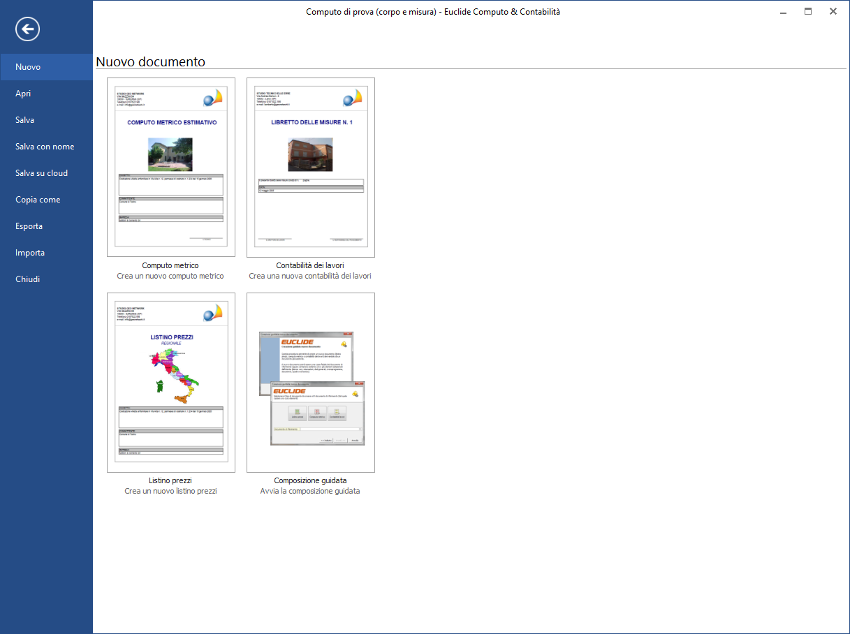 Il comando FILE | Nuovo permette di creare un nuovo documento selezionando la relativa tipologia.