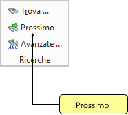 La funzione Prossimo, attivabile dal pulsante HOME | Prossimo, procede con la ricerca mostrando il risultato se esiste.