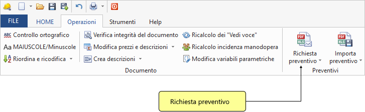 La funzionalità Richiesta preventivo permette di generare il preventivo del documento appena creato personalizzando la stampa a seconda delle esigenze.