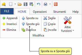 I comandi Sposta su e Sposta giù consentono di cambiare ordine, a seconda della pagina selezionata, a voci, misurazioni e righi di analisi.