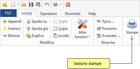 La sezione Stampe ha al suo interno le funzionalità riguardanti le possibili opzioni di stampa le quali cambiano a seconda del tipo di documento.