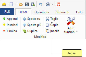 Il comando Taglia consente di copiare nel blocco degli appunti il testo selezionato all'interno di un campo, cancellandolo contemporaneamente.