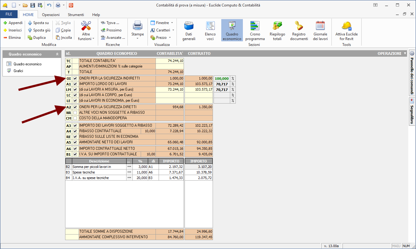 All'interno del libretto delle misure dovranno essere specificati tutti gli oneri della sicurezza indiretti man mano realizzati. Nel quadro economico della contabilità verranno evidenziati anche i totali raggiunti fino a quel momento (colonna Contabilità).