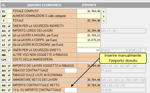 Per la terza modalità, bisogna indicare l'aliquota IVA nel Quadro economico alla casella B1 - IVA SU IMPORTO CONTRATTUALE.