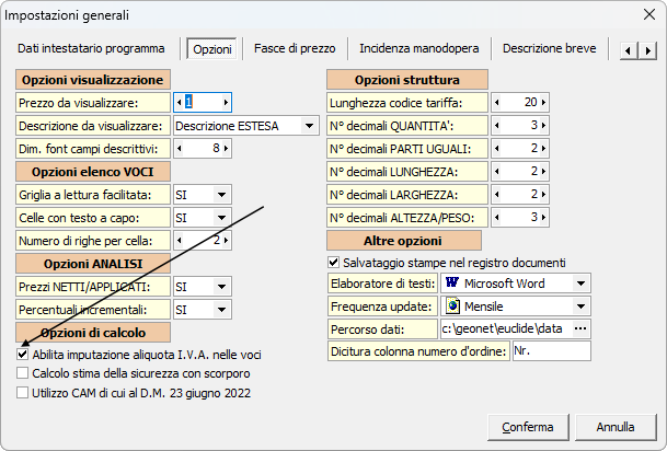 È altresì possibile imputare una aliquota IVA per una intera categoria di lavorazioni o per un gruppo di voci selezionate, attraverso l'apposito comando contenuto all'interno del menu contestuale associato al tasto destro del mouse.