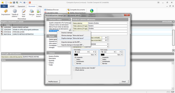 Nel caso le funzioni vengano richiamate nel momento in cui c'è un documento aperto, invece, esse agiranno sulle stampe del documento stesso.