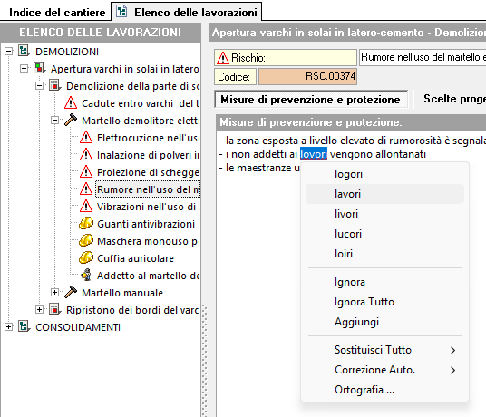 Nei campi testuali, come le descrizioni estese dei capitoli di un PSC o di una lavorazione, è attivo un controllo ortografico in tempo reale: durante la digitazione, le parole che presentano errori vengono sottolineate in rosso.