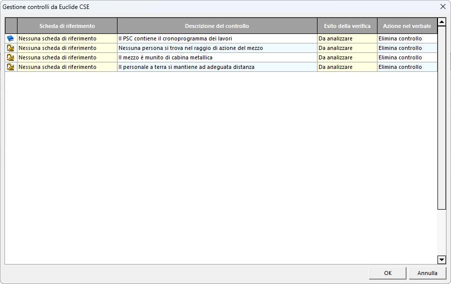 Nel caso vengano rilevate delle verifiche in cui sono stati impostati i valori "Da Analizzare" o "Non applicabile", prima di procedere alla creazione del verbale d'ispezione, sarà possibile effettuare ulteriori analisi.
