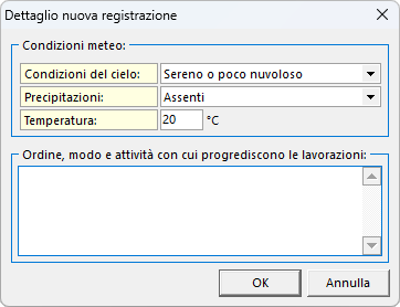 Qualora non fosse presente una registrazione alla data della check list selezionata, verrà proposto tramite apposita finestra di dialogo di indicarne i dettagli (non obbligatori).