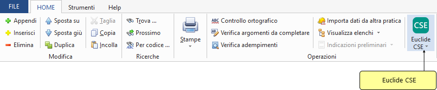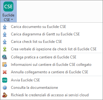 La funzione Euclide CSE, disponibile dal menu principale HOME, permette il collegamento con l'applicazione web Euclide CSE, un'applicazione web dedicata al Coordinatore della Sicurezza in fase Esecutiva, pensata per semplificare e ottimizzare la gestione della sicurezza nei cantieri edili.