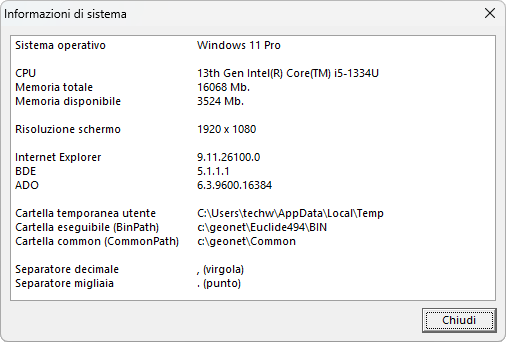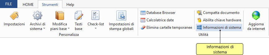 La funzione Informazioni di sistema, accessibile dal menu principale Strumenti, consente di visualizzare alcune informazione relative al PC su cui è installato il programma.
