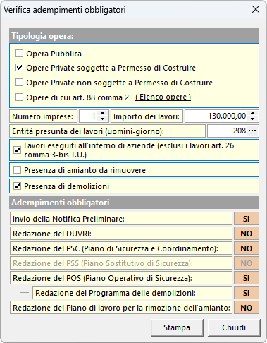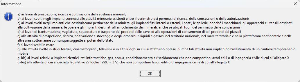 Cliccando sul pulsante Elenco opere, si aprirà una finestra di dialogo che mostra l'elenco delle opere indicate all'art. 88, comma 2 del D. Lgs. 81/2008.