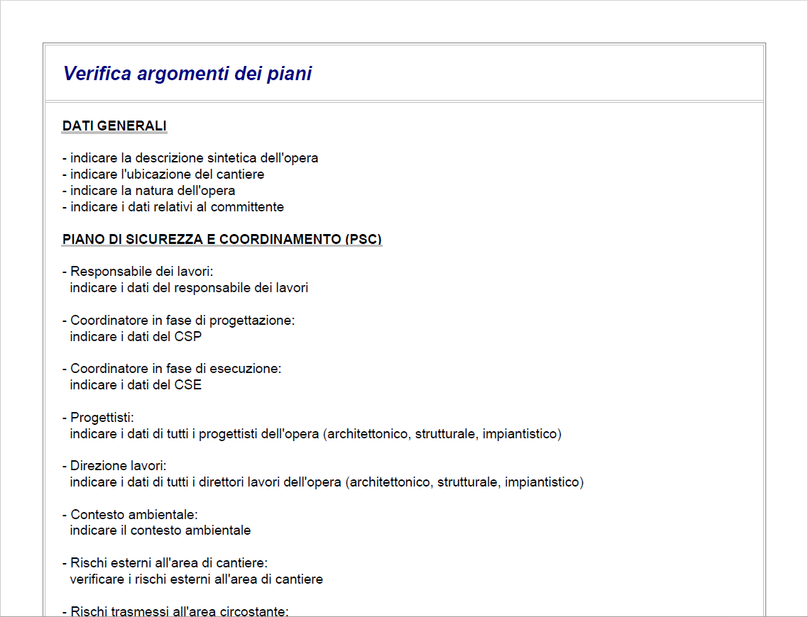 Premendo invece il pulsante Stampa, il programma produce un report riepilogativo che elenca tutti i campi da completare individuati nelle varie sezioni del documento.