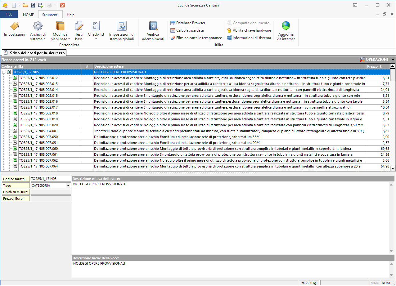 La banca dati di Euclide Sicurezza Cantieri include i prezzari ufficiali pubblicati da Regioni, Province autonome e Camere di Commercio.