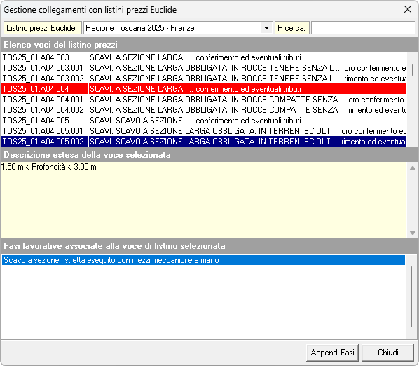 Tramite il pulsante Appendi fase è possibile associare altre voci presenti nell'archivio lavorazioni alla voce di listino prezzi selezionata.