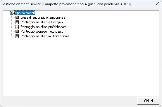 Nella figura è preso in esame l'apprestamento Parapetto provvisorio tipo A (piani con pendenza < 10°) e vengono evidenziati gli apprestamenti a esso analoghi.