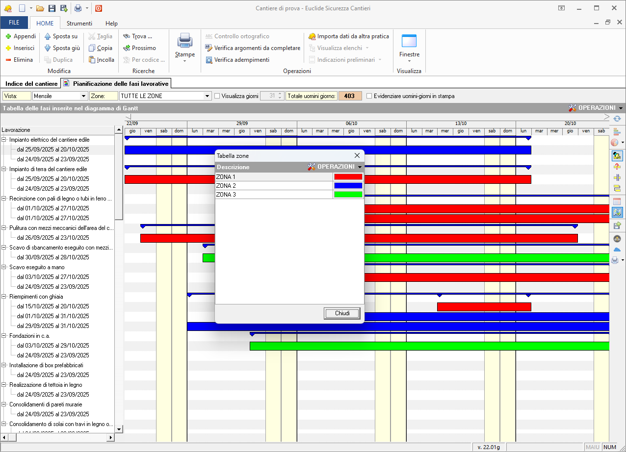 Euclide Sicurezza Cantieri permette di definire più zone all'interno dello stesso cantiere, in cui vengono svolte fasi lavorative tra loro non interferenti.