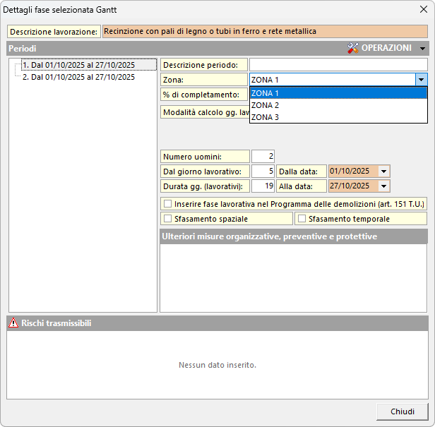 A questo punto si associano le fasi alle zone appena create, cliccando con doppio clic su una fase e inserendo nel campo Zona la tipologia di zona adeguata.