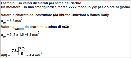 Nel caso in cui il lavoratore sia esposto a differenti valori di vibrazioni, come nel caso di impiego di più utensili vibranti nell'arco della giornata lavorativa, o nel caso dell'impiego di uno stesso macchinario in differenti condizioni operative, l'esposizione quotidiana a vibrazioni A(8), in m/s2, sarà ottenuta mediante l'espressione: