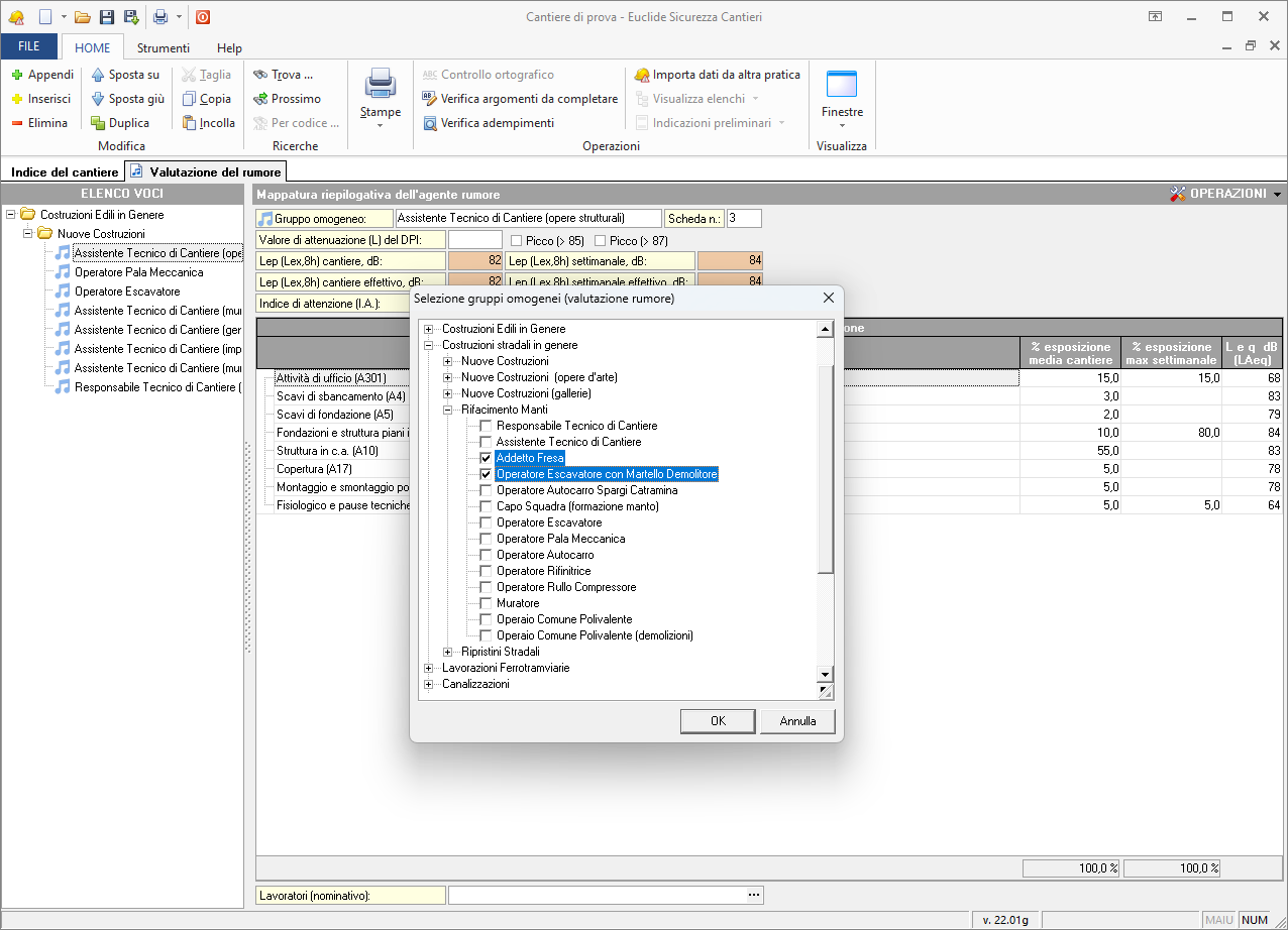 Il documento di valutazione del rumore può essere composto in maniera molto semplice inserendo nel documento stesso i gruppi omogenei di lavoratori contenuti nell'archivio rumore.