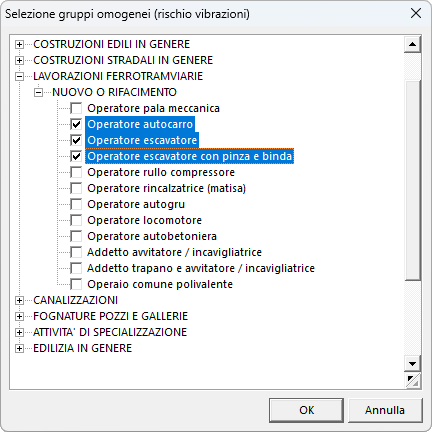 È consigliabile – al fine dell'identificazione dei gruppi omogenei di lavoratori e dell'analisi dei relativi tempi di esposizione – fare riferimento alla banca dati fornita con Euclide Sicurezza Cantieri e derivante dallo studio effettuato dal C.P.T. di Torino.