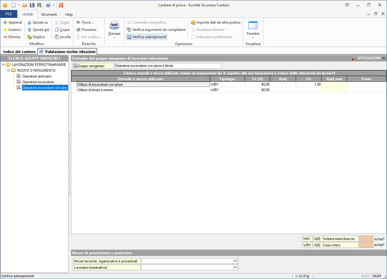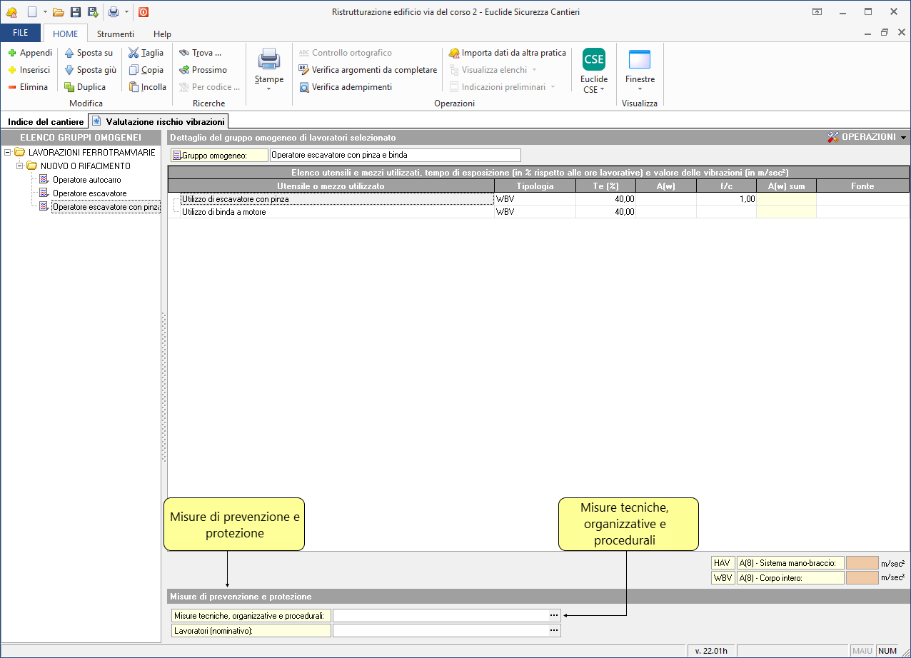 Euclide Sicurezza Cantieri, consente – in maniera semplice ed efficace – di redigere tale documento conformemente al contenuto delle "Linee guida per la valutazione del rischio vibrazioni negli ambienti di lavoro" predisposte dall'ISPESL.