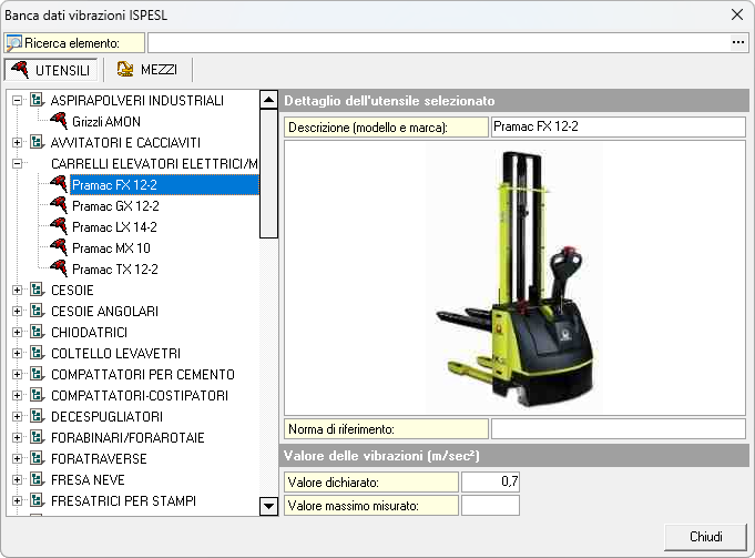 Il D. Lgs. 81/2008 prescrive l'utilizzo obbligatorio della banca dati fornita dall'ISPESL che contiene – ove presente – il valore di accelerazione misurato per una vasta serie di utensili e mezzi di differenti marche e modelli.