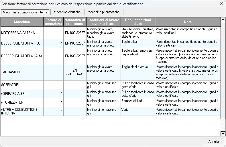 Nel caso l'archivio contenga soltanto il valore dichiarato e non quello misurato, viene automaticamente applicato il fattore di correzione stabilito dall'ISPESL.