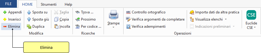 Il comando Elimina consente di eliminare uno o più elementi dal quadro correntemente selezionato.