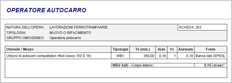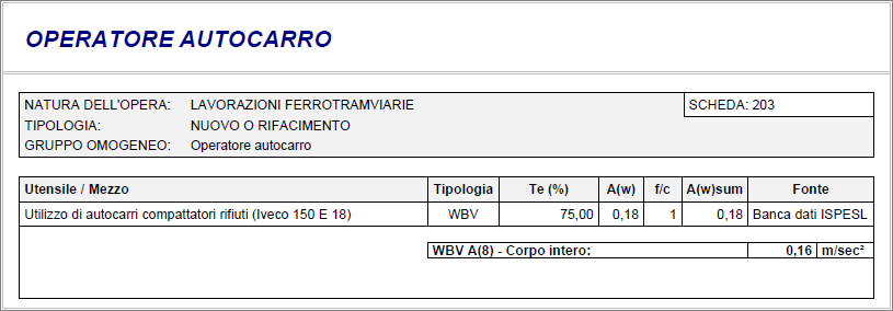 Esempio di stampa del Documento di valutazione del rischio vibrazioni in minuti:
