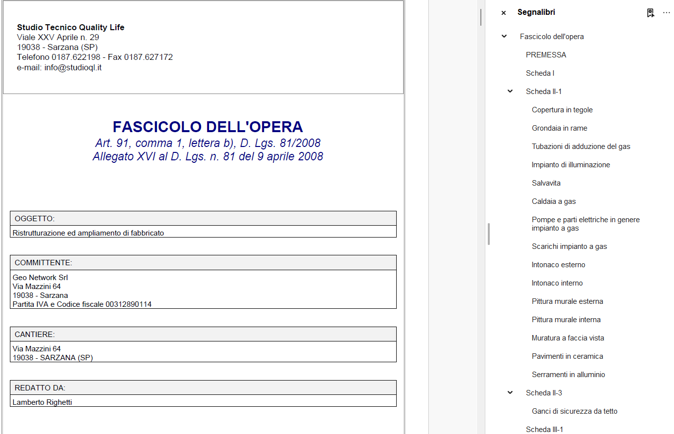 Come descritto nell'introduzione, prima di generare l'elaborato, Euclide Sicurezza Cantieri permette di gestirne le revisioni.