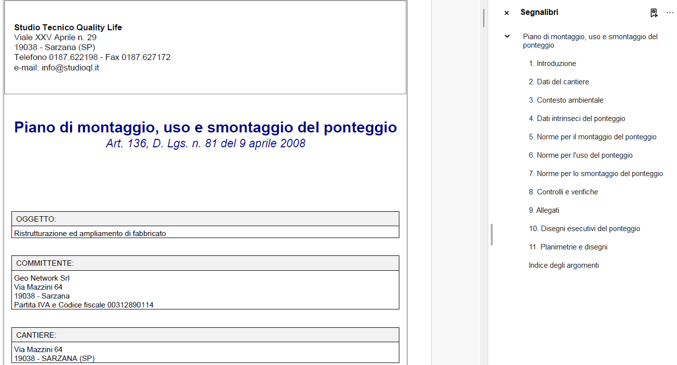 Pi.M.U.S (montaggio, uso e smontaggio del ponteggio)del menu principaleHOME | Stampe | Composizione elaborati.