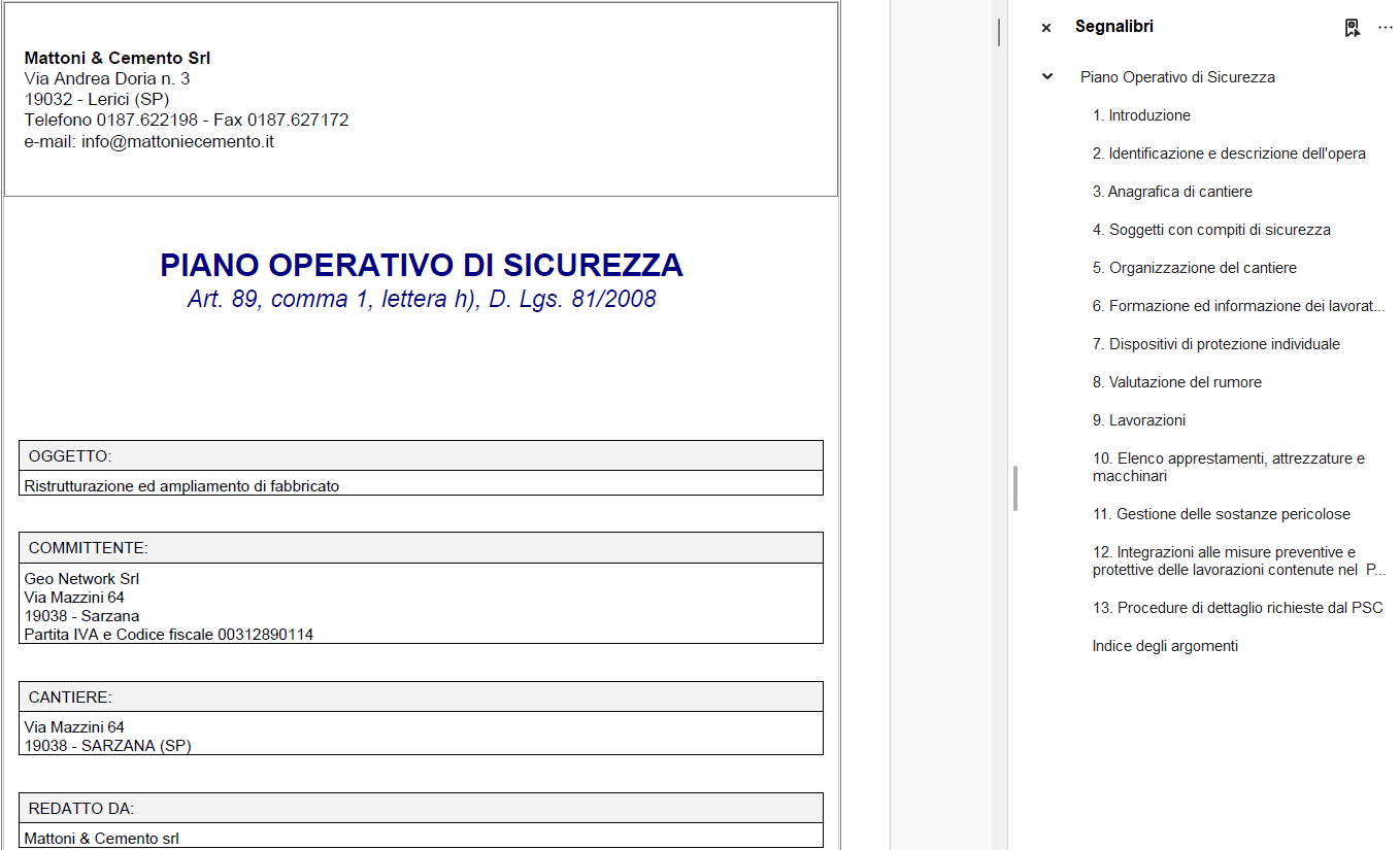 POS (Piano Operativo di Sicurezza)del menu principaleHOME | Stampe | Composizione elaborati.