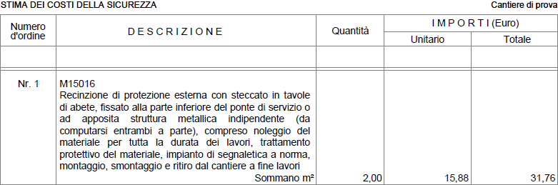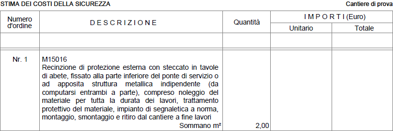 Stima dei costi per la sicurezzadel menu principaleHOME | Stampe | Composizione elaborati.