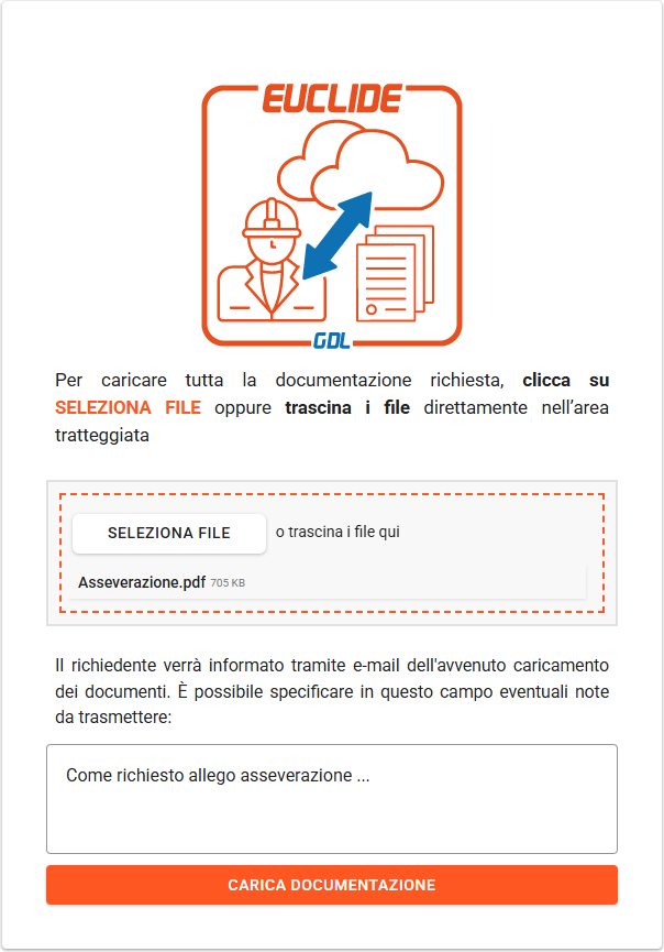 Il destinatario - una volta ricevuta l'e-mail - potrà accedere al link contenuto nel messaggio e caricare direttamente la documentazione richiesta tramite una pagina dedicata accessibile dal proprio browser web.