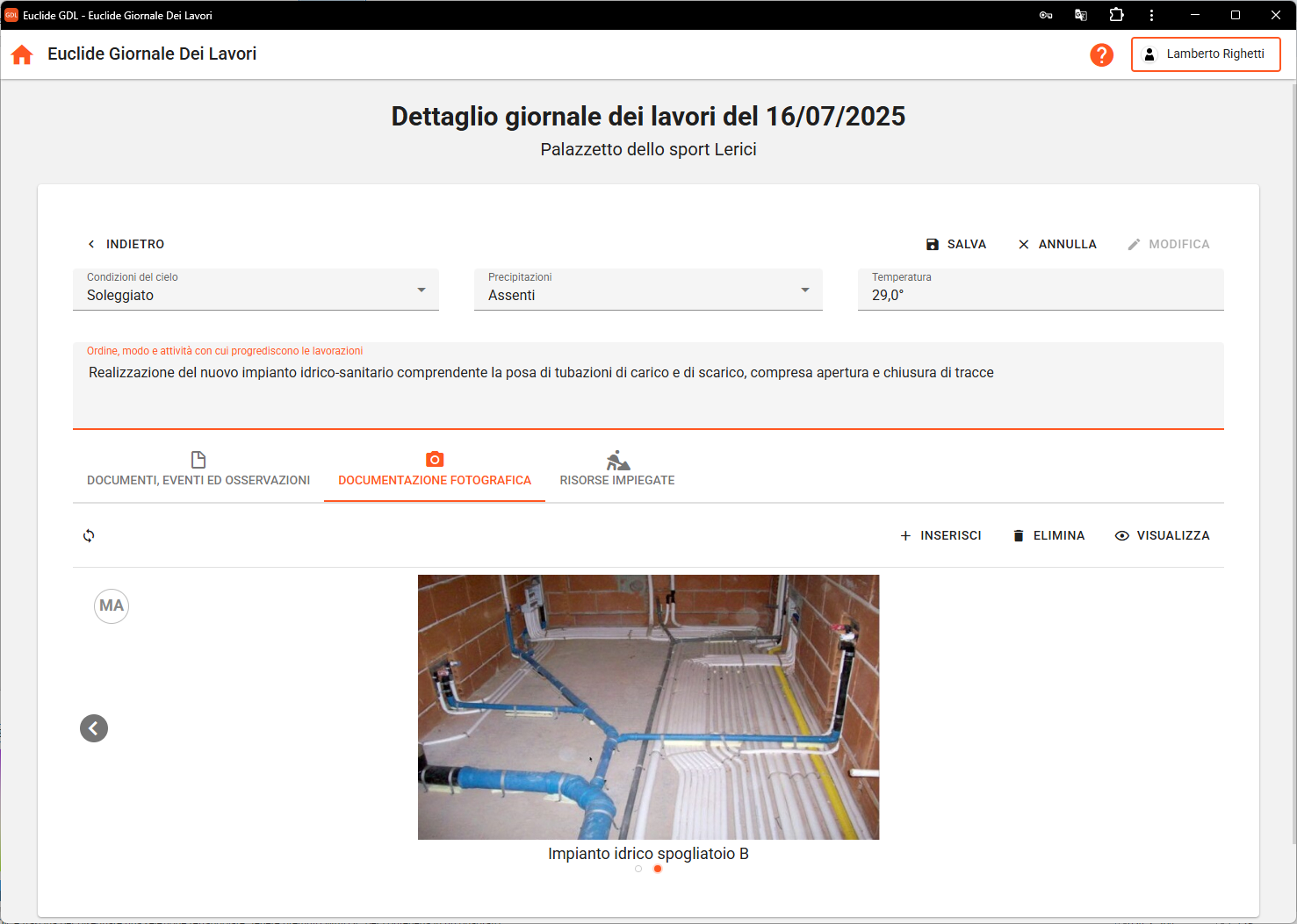 In questa sezione è possibile inserire immagini relative ad una determinata registrazione del giornale dei lavori.