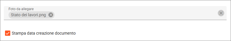 Il campo Foto da allegare consente di richiamare le fotografie precedentemente caricate nella sezione Documentazione fotografica. Le immagini selezionate verranno stampate nel verbale scelto.