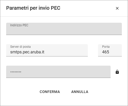 Qualora il provider del servizio PEC lo richieda è necessario generare una password speciale per le applicazioni. Si veda l'esempio di Aruba nella scheda tecnica seguente: Come impostare la password per le applicazioni nella PEC di Aruba?
