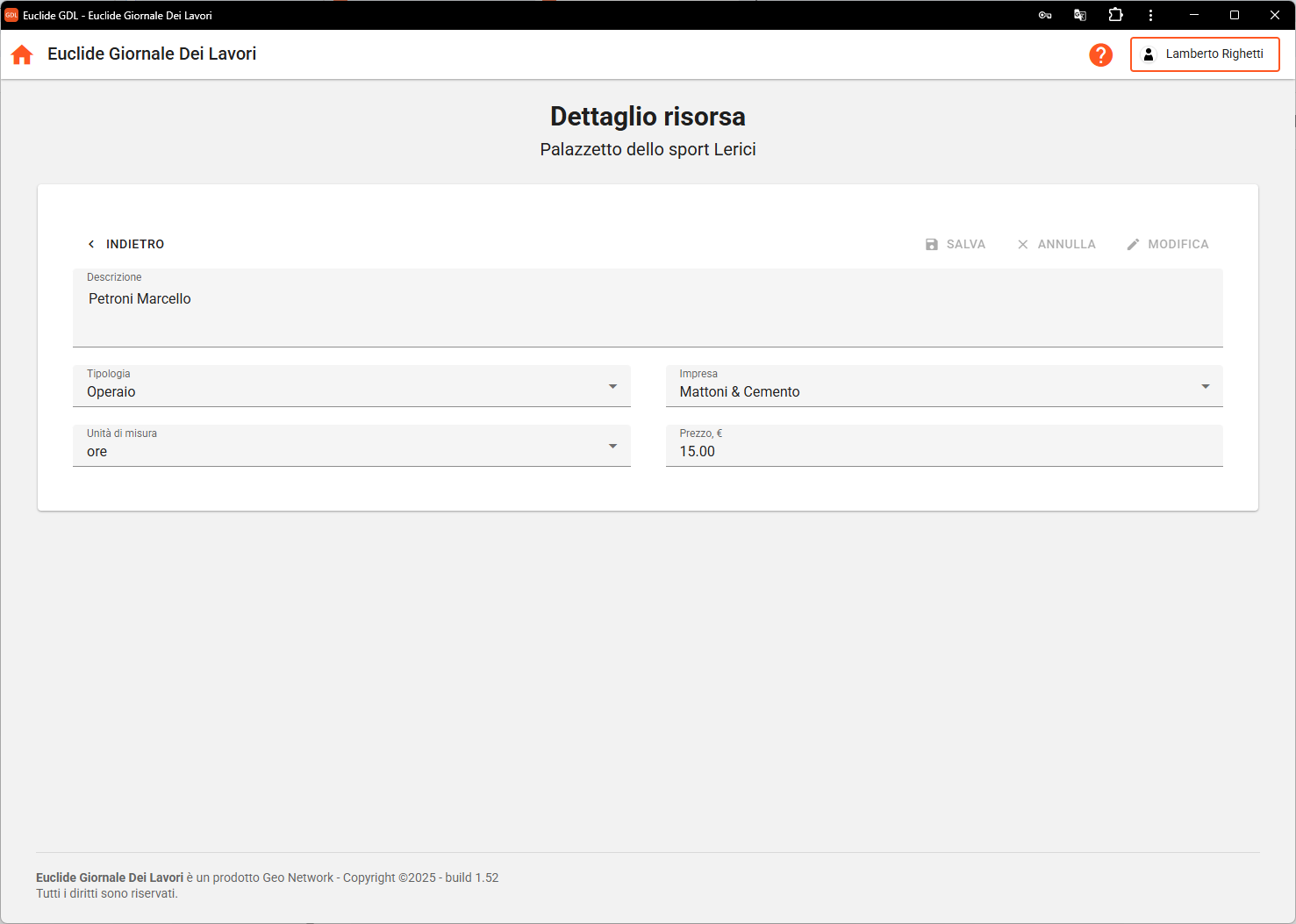 - Descrizione: nominativo o descrizione della risorsa (es. "Cemento", "Escavatore")