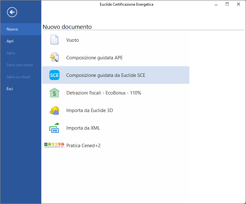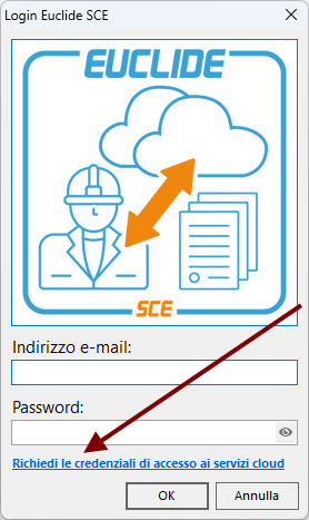 Il modo più semplice è farlo direttamente dall'interno di Euclide Certificazione Energetica richiamando la funzione Composizione guidata da Euclide SCE e premendo sul link Richiedi le credenziali di accesso ai servizi cloud.