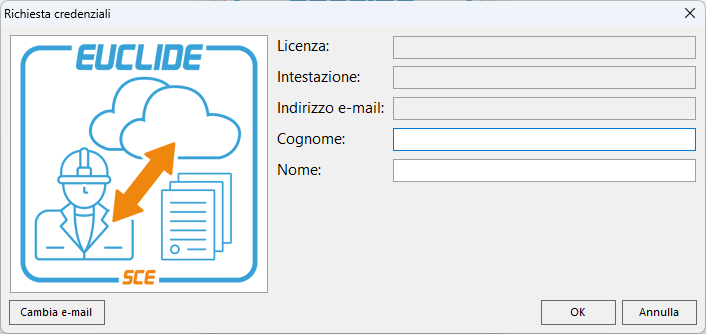 Ricordiamo che ad ogni licenza di Euclide Certificazione Energetica è possibile associare una sola e-mail e un solo nominativo per l'utilizzo di Euclide SCE.