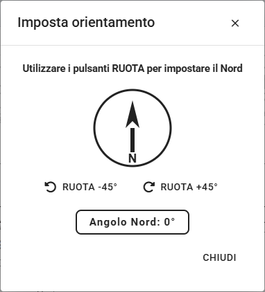 La funzione denominata Bussola permette di regolare l'orientamento dell'edificio tramite comandi che ne modificano la direzione con incrementi o decrementi di 45°.