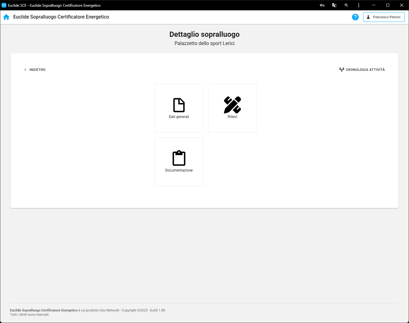 | Permette di visualizzare la Cronologia delle attività per il sopralluogo selezionato |